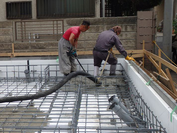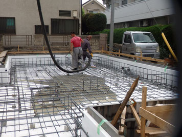配筋検査を終え、コンクリートの打設を行います。