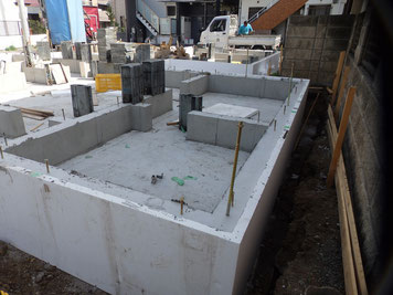 最初に底部分を打設し、乾燥させた後に