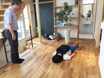 ↑ ・・・身体全体で無垢フローリングを感じるご主人様