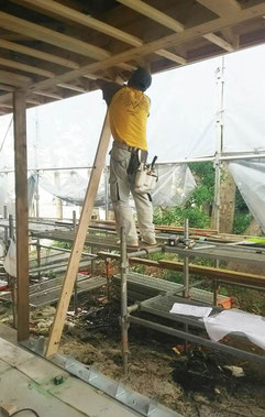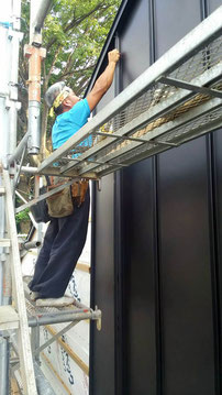 とうとう外壁のガルバリウム鋼板張りがはじまりました。