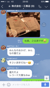 まるで想像していなかったそうで、社内グループLINEに生中継してきて