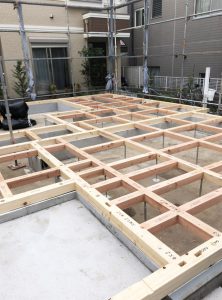 コンクリート基礎の底面と立ち上がり面を断熱材でぐるっと覆っておりますので