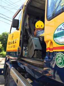 休憩時間にはクレーン車に乗せてもらいニッコニコです(^_^)