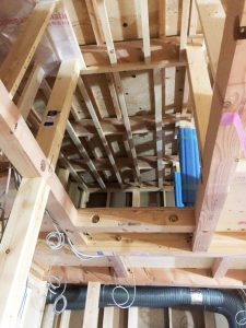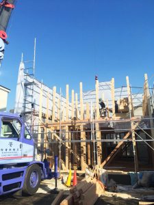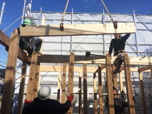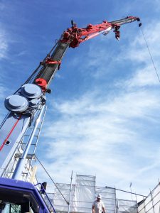 ボリュームたっぷり!Wカツ丼で午後の工事も気合が入り、一気に棟木まで上がりました。