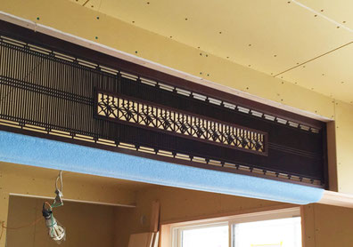 家具屋さんで購入した欄間や、明治時代の古い格子戸などが盛り込まれ
