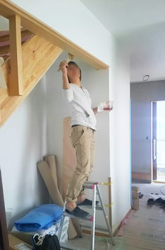 奥様も現場に通って塗装工事、頑張ってくださいました。ハケ持つ姿がお美しい!
