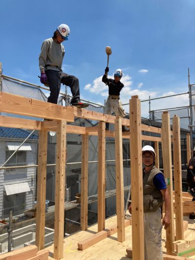 夏の日差しの中、O様邸無事上棟の運びとなりました。