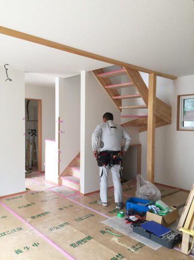 こちらはお馴染み、大工さん泣かせの階段 (^-^;