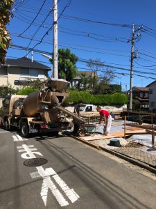 本日は基礎工事がはじまりました調布市の現場をご紹介致します。