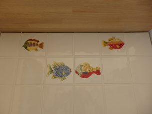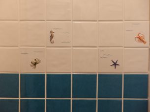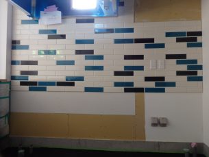 店舗の厨房、トイレのタイルはお施主様のこだわりです。