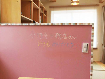 いつの間に、リビングの黒板にお施主様から嬉しいメッセージが♪♪