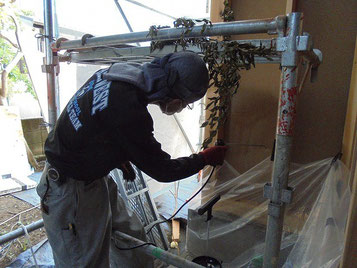 土台、柱の下から1mあたりの部分と1・2階の窓周りの木部に塗ります。