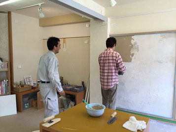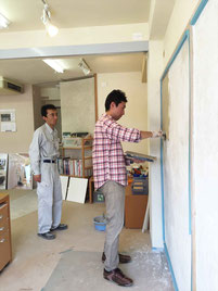 ソウ土建材さんでは丁寧な指導のもと塗り体験を