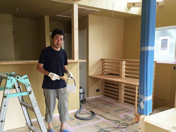 お施主様自ら現場で腕を振るい、マイホームの完成に