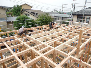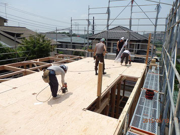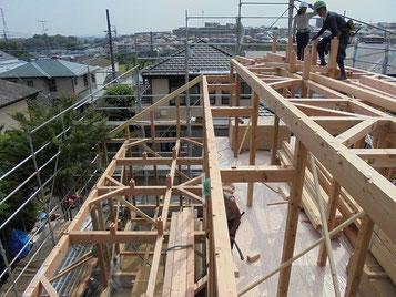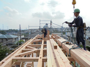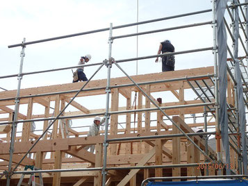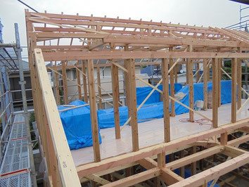野地板までは終わりませんでしたが、無事に棟上げが完了しました。