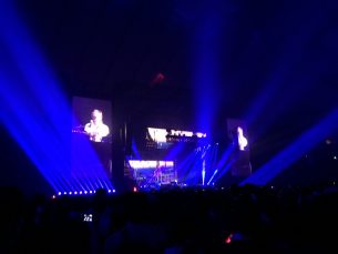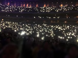 4万5千人を前にして一人一人に語りかけるような優しい歌声、