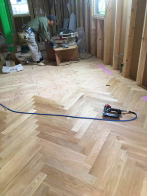 フローリング:オーク無垢材 ヘリンボーン貼り