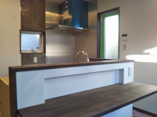 内部も吹き抜けの有るリビング、造り付けのキッチン、仕上げのタイル等、見所がたくさん有ります。
