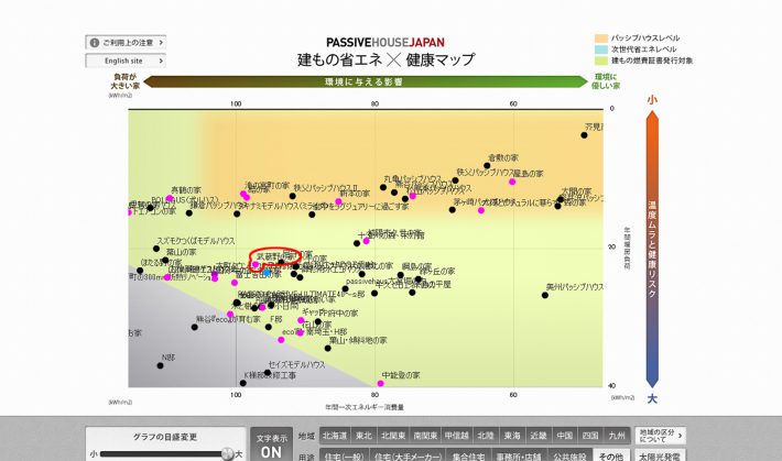 右に行けば行くほど一次エネルギー消費量が少ないお家、という事になります。