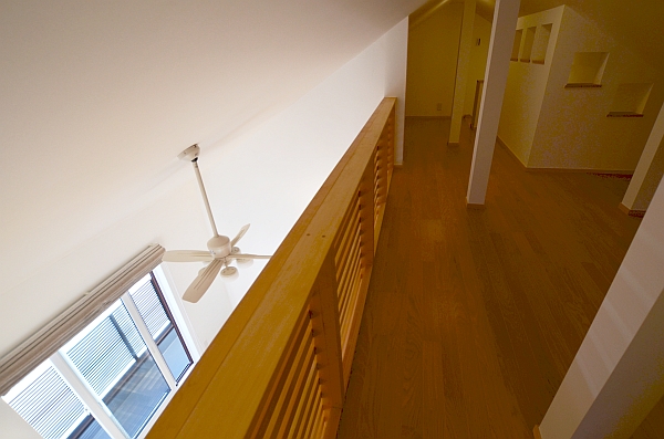 寝室の上には大きなロフトを作りました。収納はもちろん、家族の荷物が少ない間は、書斎にも使えます。