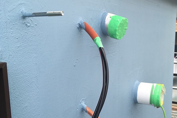 下の写真のような配管や電気配線が突き出る場所も、確実に防水できます。