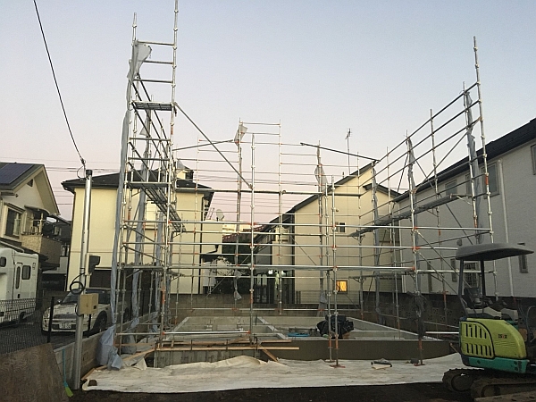 11月20日の写真です。翌日の棟上げ(上棟)に備えて、足場を組み上げました。