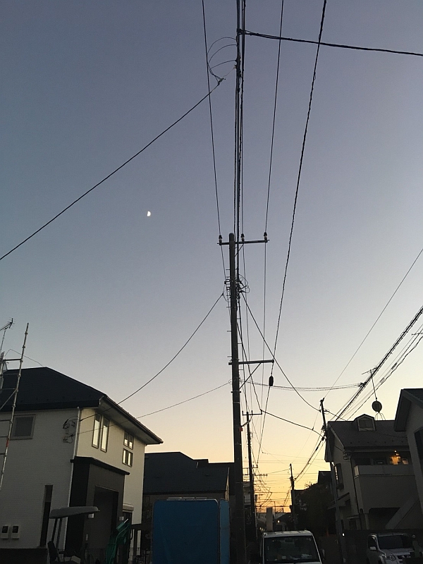 仕事を終えて空を見上げると上弦の月が見えました。明日は晴れそうです。