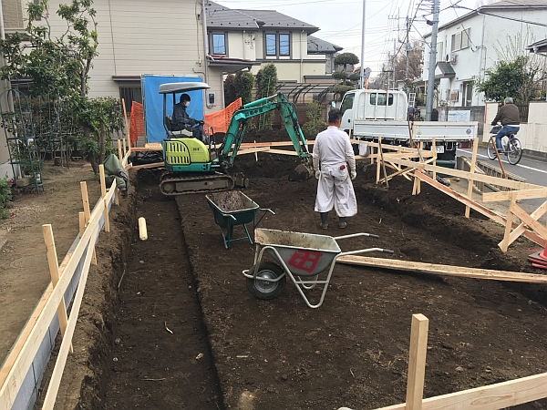 遣り方が終わると基礎をつくるために土地を掘り下げていきます。