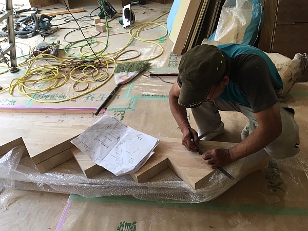 階段の「ささら」を作る大工さん。