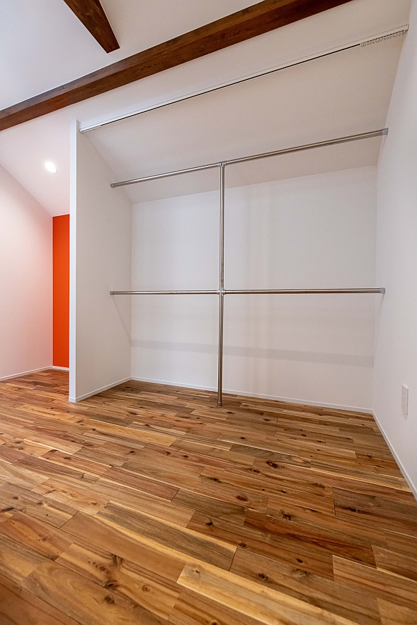 A様邸は、2階全体がご家族のプライベートスペースという考え方です。2階ホールにたっぷりのクローゼット空間を設け、クローゼットを通って、主寝室や子供部屋に入る動線となっています。ウォークインクローゼットならぬ、ウォークスルークローゼットといったところでしょうか。