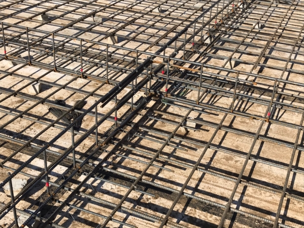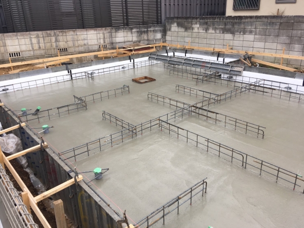 少し遠くから出来上がった基礎配筋を撮影しました。いつも通り「密」に組まれています。