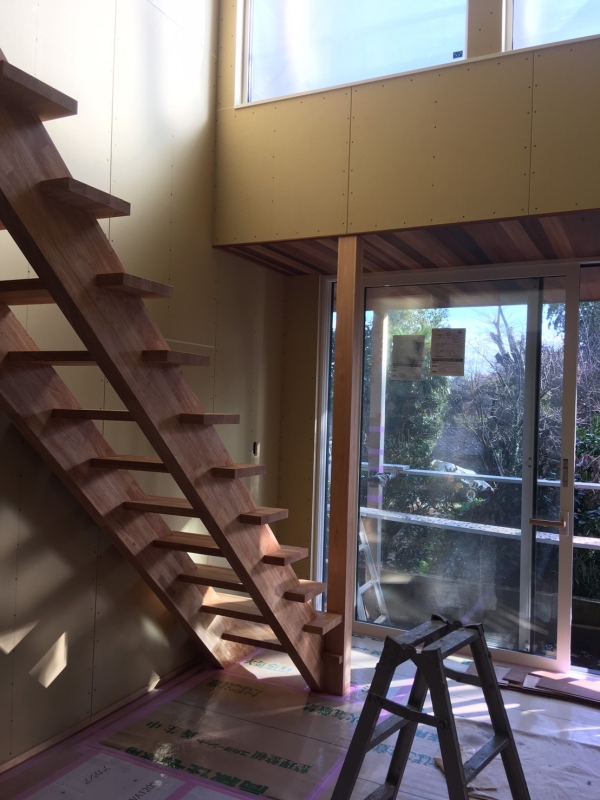 スケルトン階段もできあがっています。この後、スチール製の手すりを付けていきます。