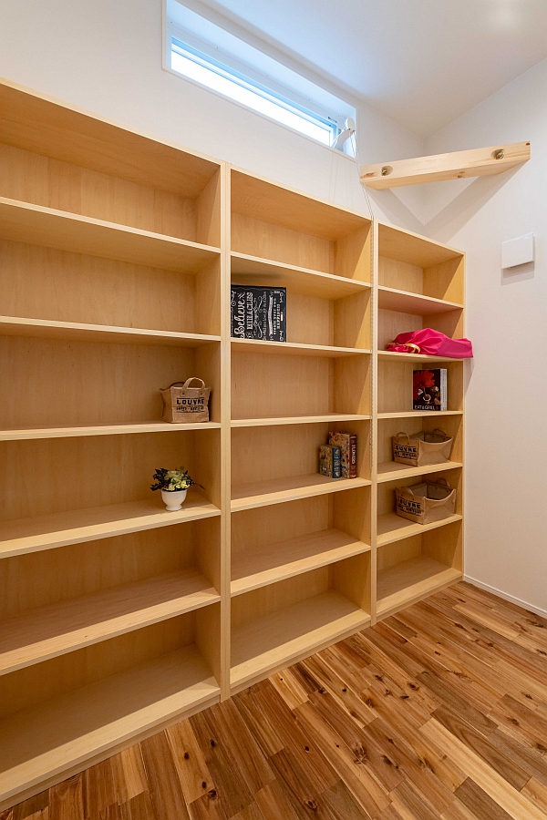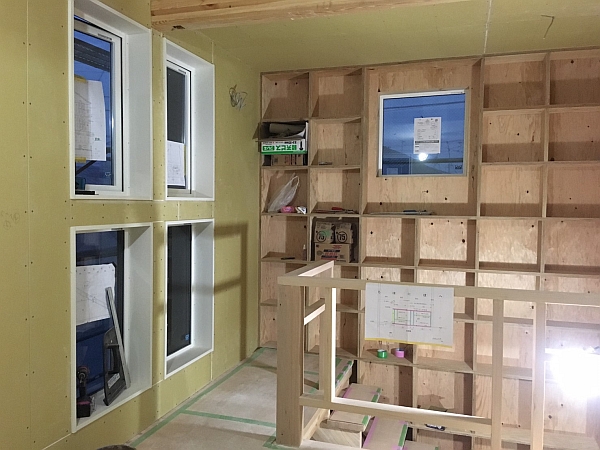 前回断熱工事から気密検査の様子をレポートしたS様邸。今回は製作が進む造作本棚をドーン!と紹介します。