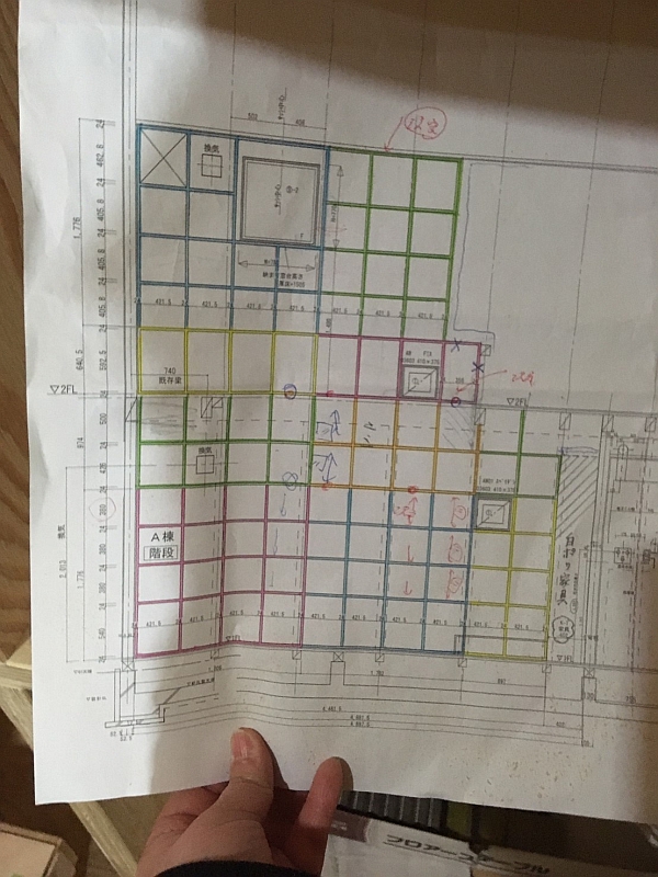 電気打ち合わせの際は、TVドアホンや各種スイッチの位置や高さがわかるように、下の写真のような紙を貼っておきます。