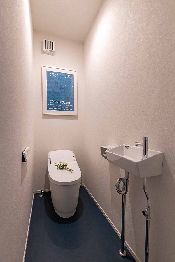 トイレの床にはリノリウムを使用しています。誤解されている方も多いのですが、リノリウムは亜麻仁油、木粉、コルク粉、石灰石などが原材料の天然素材です。
