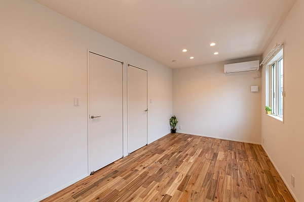 子供部屋です。将来間仕切りして2つに分けられるようにドアを2つ付けています。