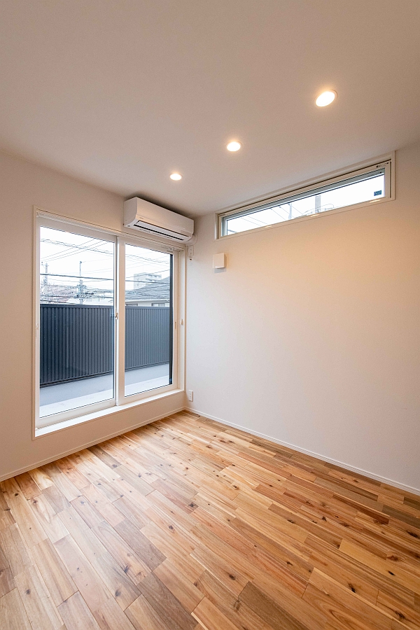 2階のベランダに面した主寝室です。2階の床はアカシアの無垢材を使っています。