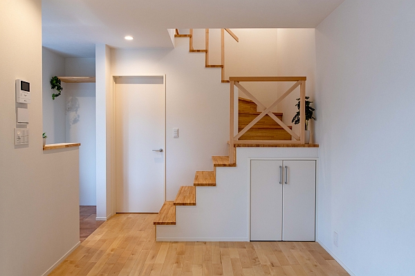 というわけで、K様邸の完成写真紹介は、掟破りの玄関の内側からスタートします。
