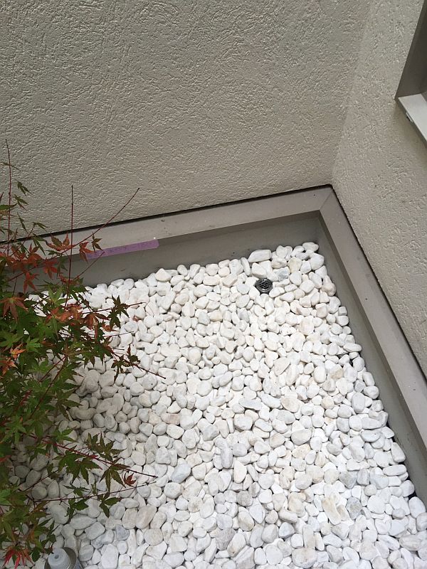さて、この坪庭ですが、四方を壁で囲んでいるため、集中豪雨など短時間で大量の雨が降った時の排水処理が施工上のポイントになります。そこで、どのような排水処理を施しているか、カンタンに説明しておきます。