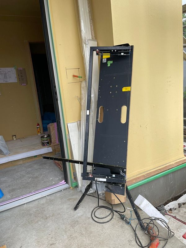 EPSボード専用の切断機「熱線式スチロールカッター」です。その名の通り、電熱線で100ミリ厚のEPSボードをスパスパ切断します。