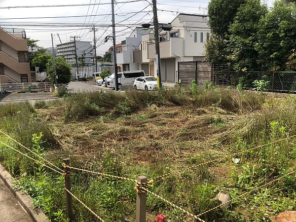 そしてこれが、5月に撮った写真です。雑草の勢いがすさまじく、地盤調査の機械を入れるのに大変苦労をしました。