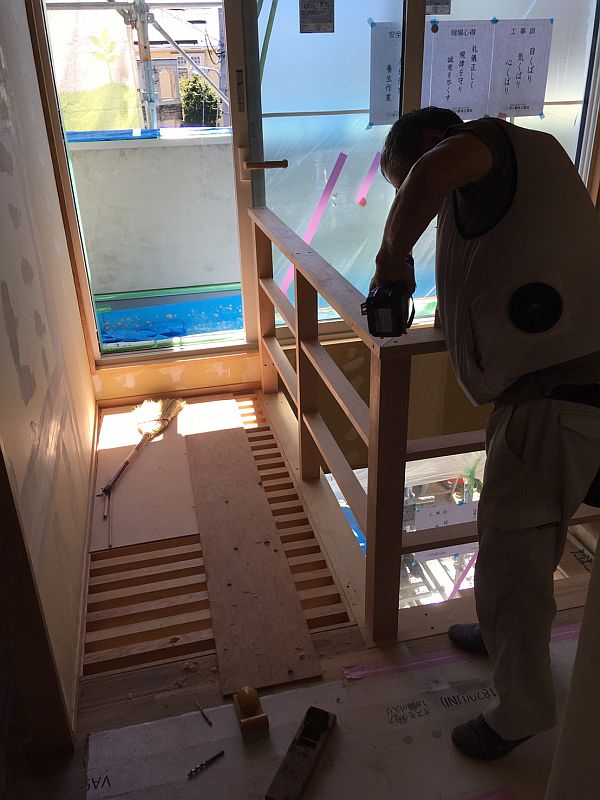 手すりの設置が終わりました。手すりはこの後、細かな仕上げを行います。