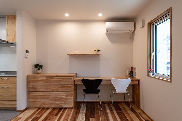 しかも、一般的なエアコンを使うので、床暖房と比べて初期費用が安く、さらに故障したときの修繕も圧倒的に簡単です。(床暖房は故障個所の特定も、修理も大事(おおごと)になります)
