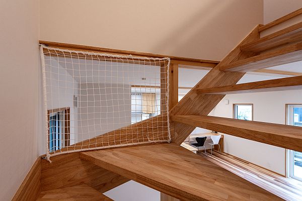 階段を上って2階を見ていきましょう。下の写真のネットは落下防止用ネットです。お子様が小さい間だけ、付けておきます。