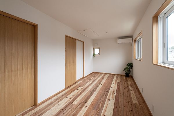子ども部屋。将来2部屋に区切れるように、引き戸を2か所設置しています。