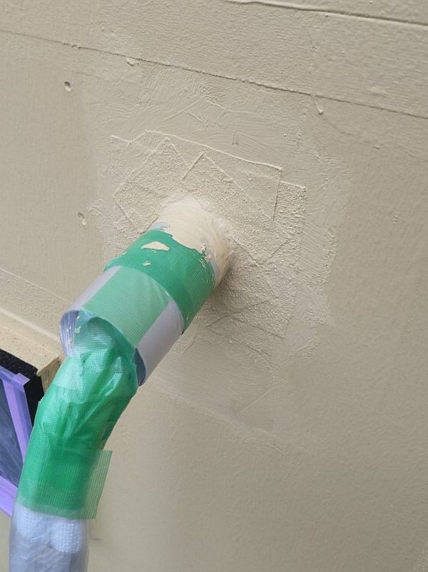 配管が外に出る場所もジョイントテープを重ね貼りして、念入りにゴールドコートを塗り込んでいきます。