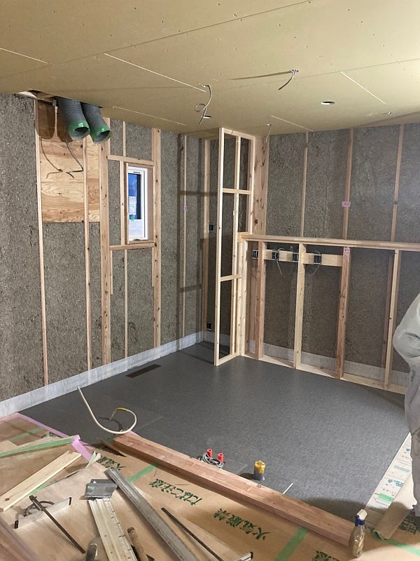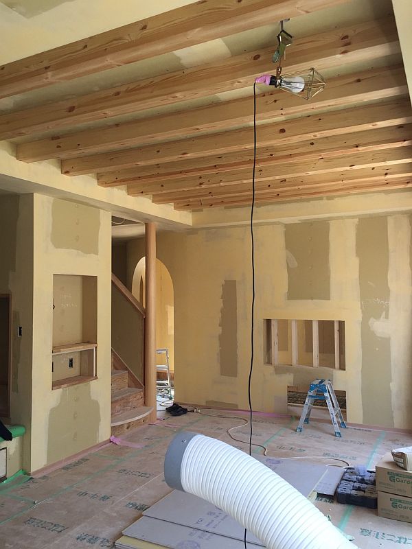 完成に向けて着実に工事の進むNA様邸。ご紹介したい内容が盛りだくさんなので、1)屋内の木工事編、2)外壁工事編、3)壁紙工事編の3章に分けてレポートしたいと思います。