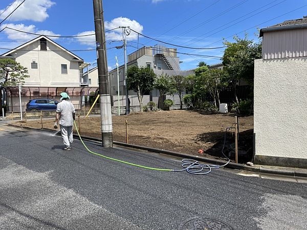 下の写真はK様邸の建築予定地です。北東の角地になります。