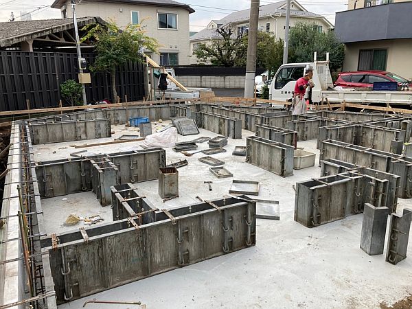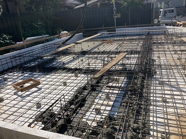 立ち上がり部分の型枠を設置して、そこにコンクリートを流し込んだら…