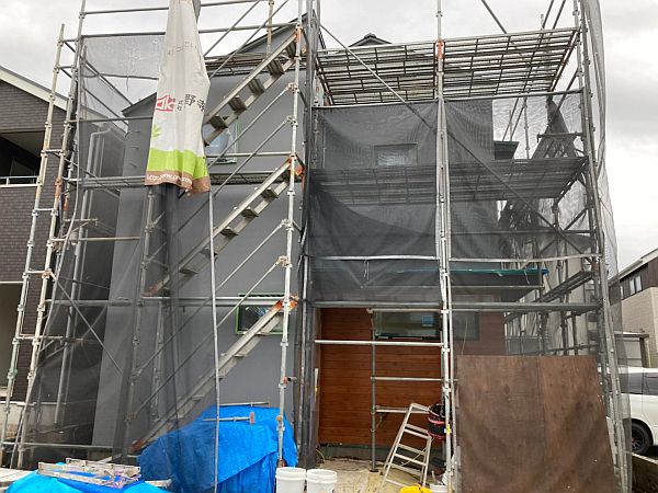 家の外周全体にEPSボードを貼り付けた状態のO様邸。
